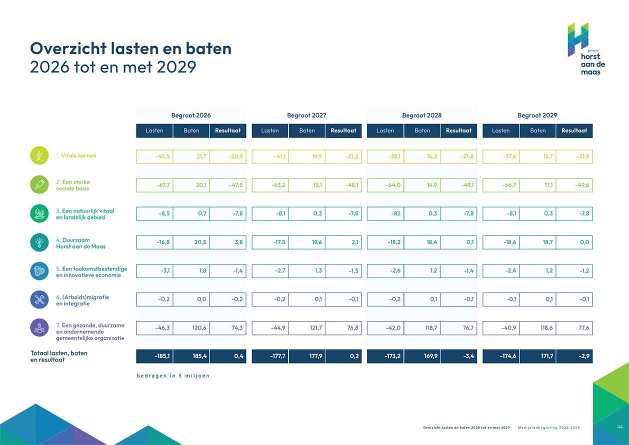 4. Duurzaam Horst aan de Maas | -16,8 | 20,5 | 3,8 | -17,5 | 19,6 | 2,1 | -18,2 | 18,4 | 0,1 | -18,6 | 18,7 | 0,0 |